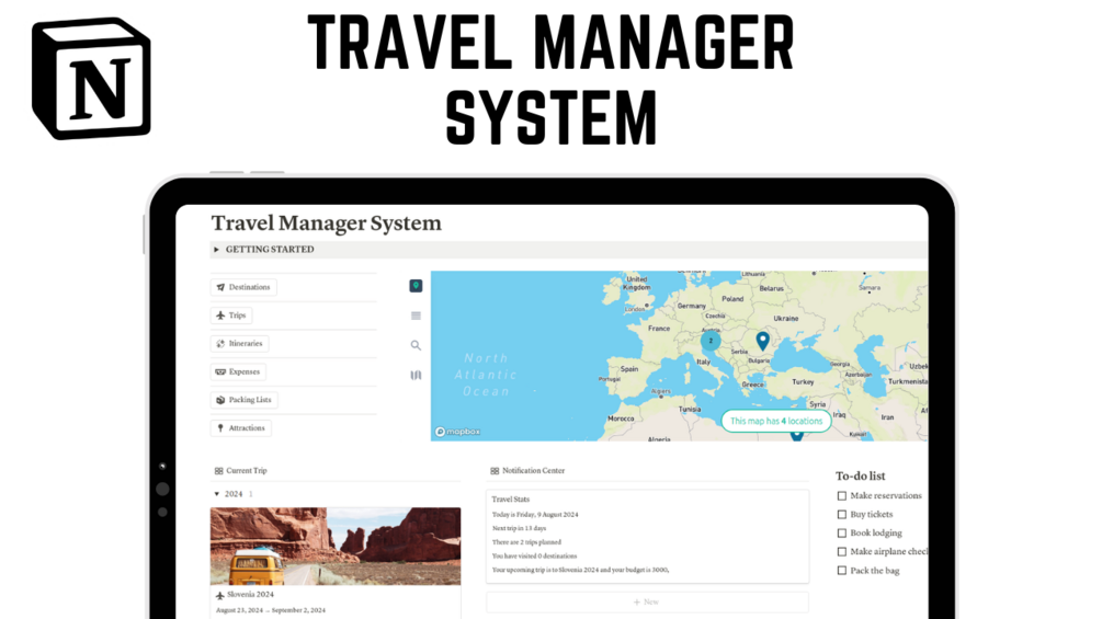 Organize your adventures like a pro! Travel Manager System is a powerful Notion template designed to streamline your travel planning.