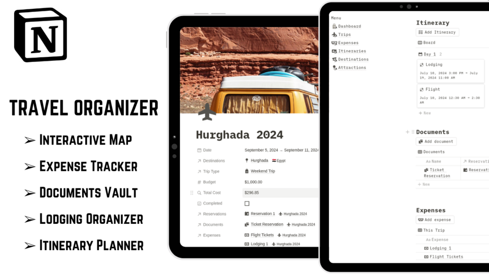 Organize your adventures like a pro! Travel Organizer is a powerful Notion template designed to streamline your travel planning.